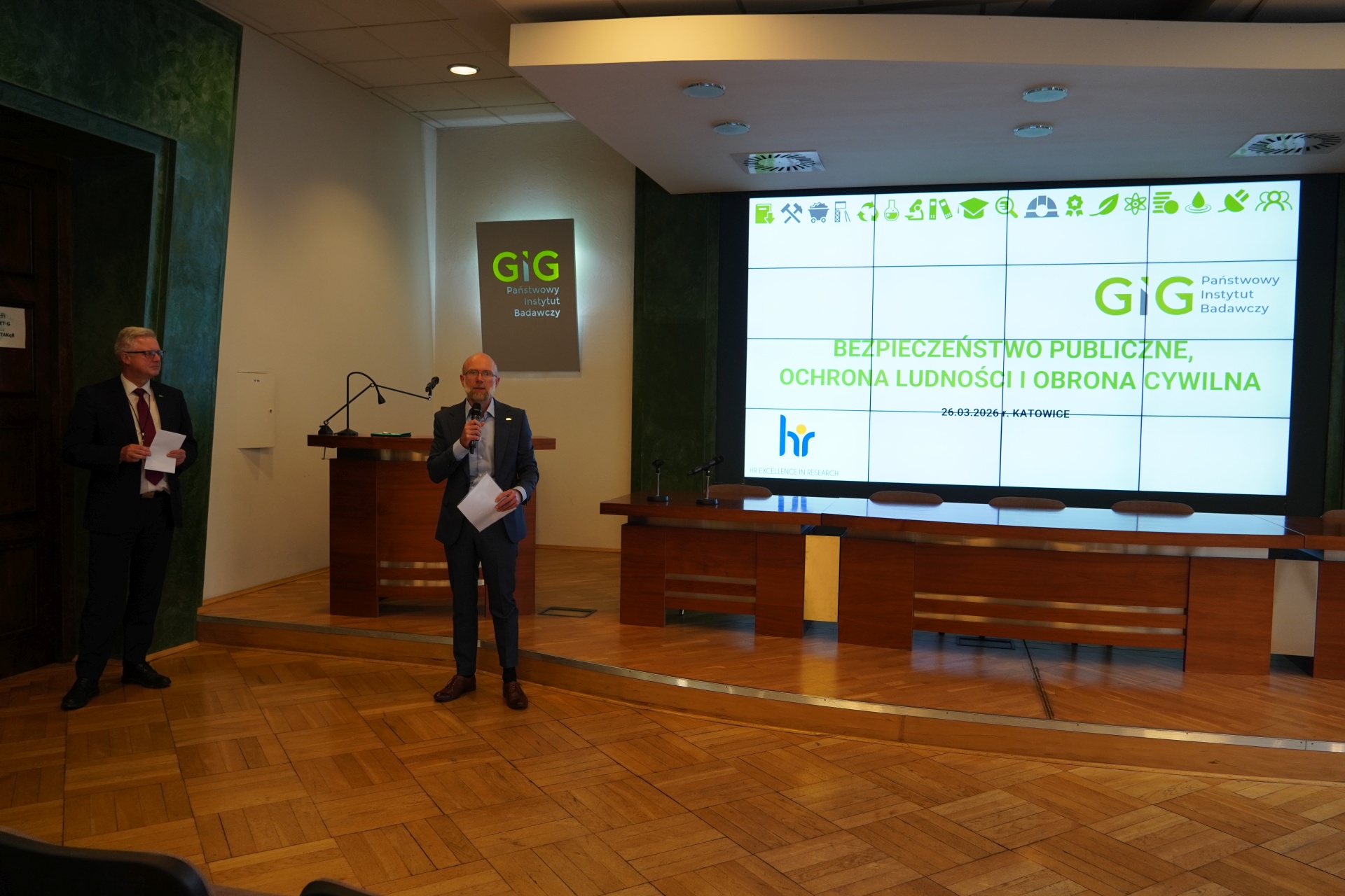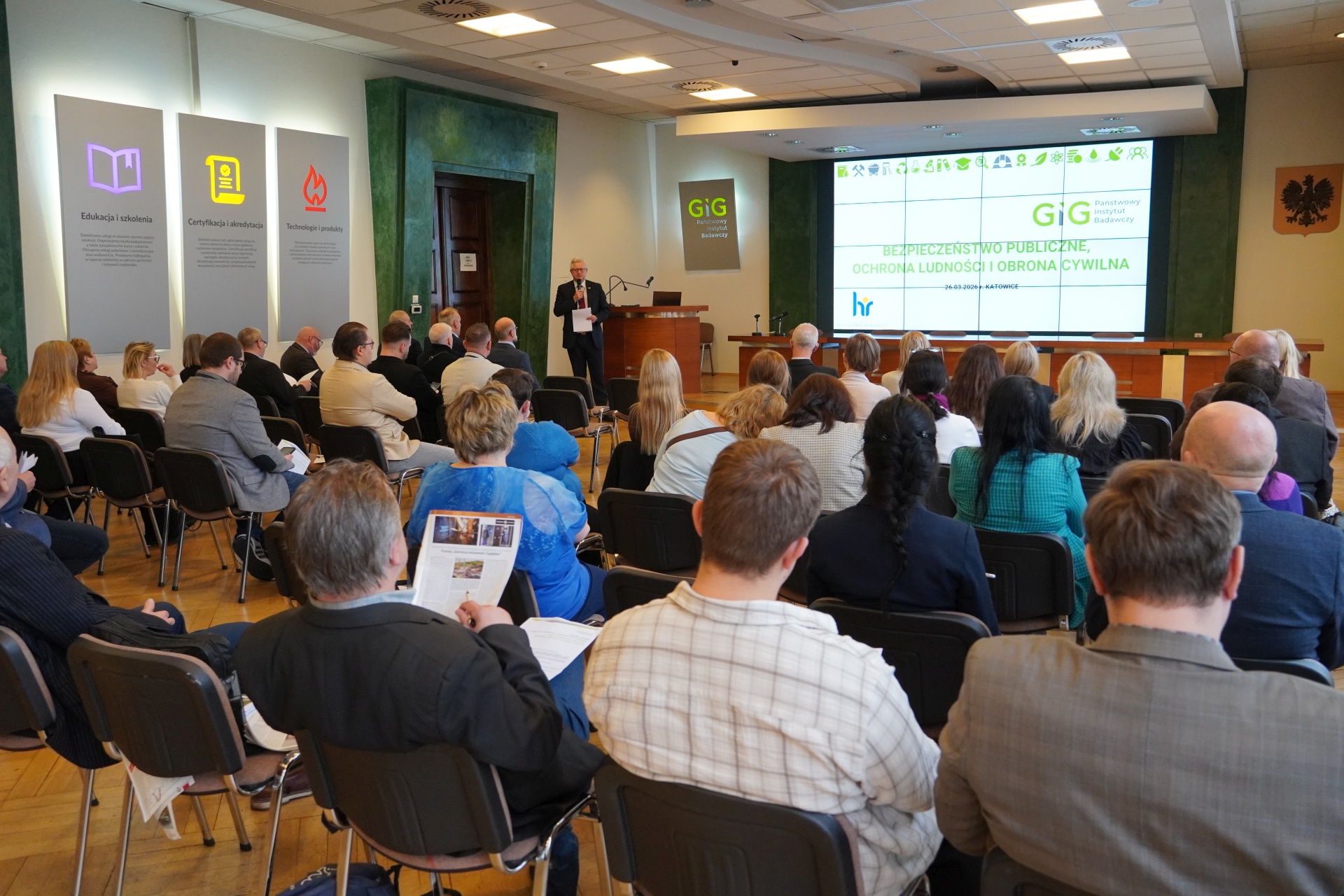26 marca 2026r. w Głównym Instytucie Górnictwa odbyło się spotkanie  poświęcone współczesnym wyzwaniom w obszarze bezpieczeństwa publicznego i obrony cywilnej, w którym uczestniczyli przedstawiciele Jednostek Samorządu Terytorialnego, placówek oświatowych, Centrów Zarządzania Kryzysowego oraz Operatorów Infrastruktury Krytycznej. W trakcie spotkania eksperci GIG-PIB omówili szeroki wachlarz zagadnień, poczynając od aspektów prawnych nowej ustawy o ochronie ludności, poprzez techniczne detale zabezpieczeń przeciwpożarowych, radiacyjnych oraz budowlanych.
