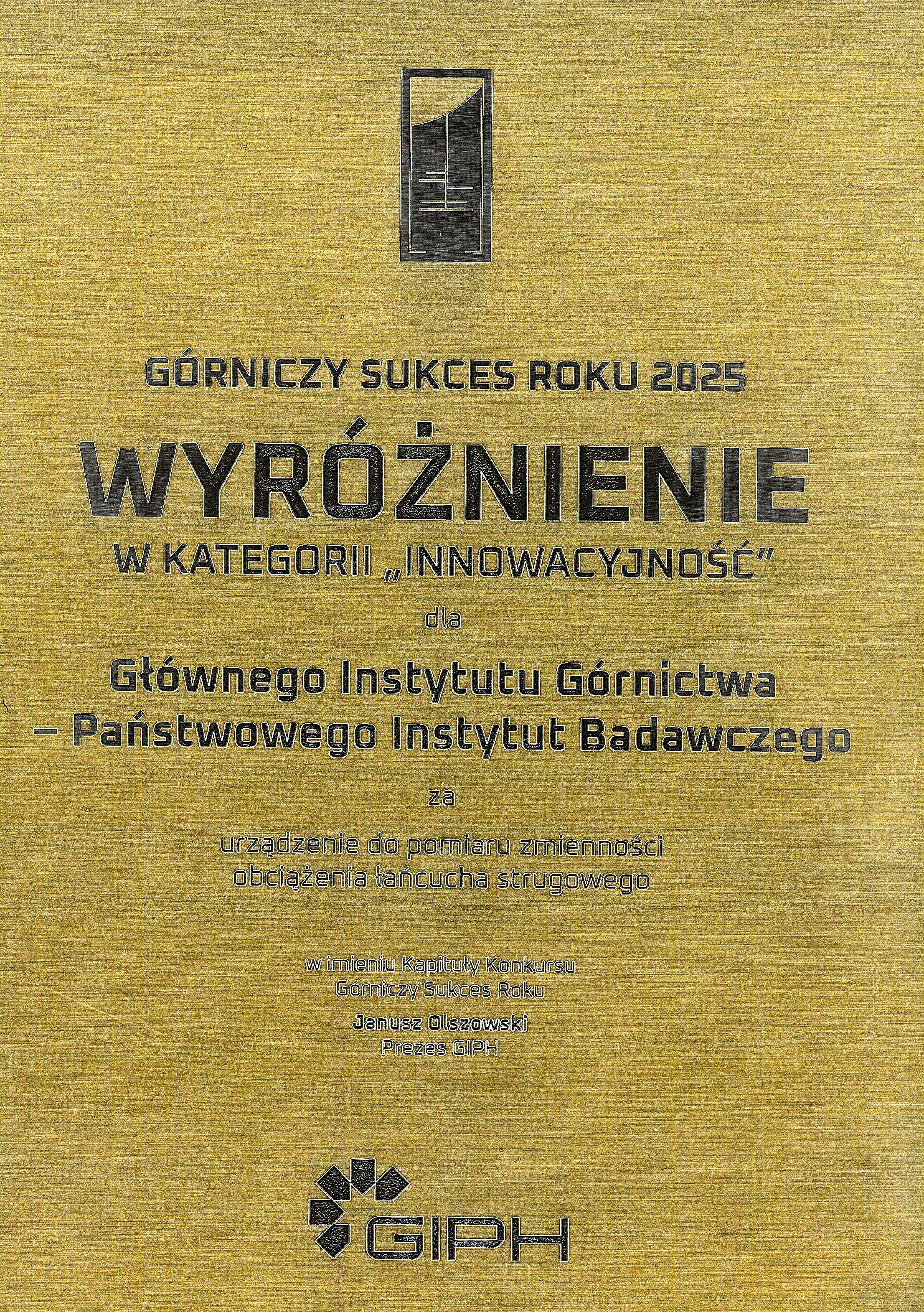 Urządzenie opracowane przez specjalistów GIG-PIB otrzymało wyróżnienie w konkursie GIPH Górniczy Sukces Roku. To rozwiązanie, które po raz pierwszy pozwala bezpośrednio zmierzyć siły działające na łańcuch strugowy, jeden z najbardziej obciążonych elementów kompleksu ścianowego.